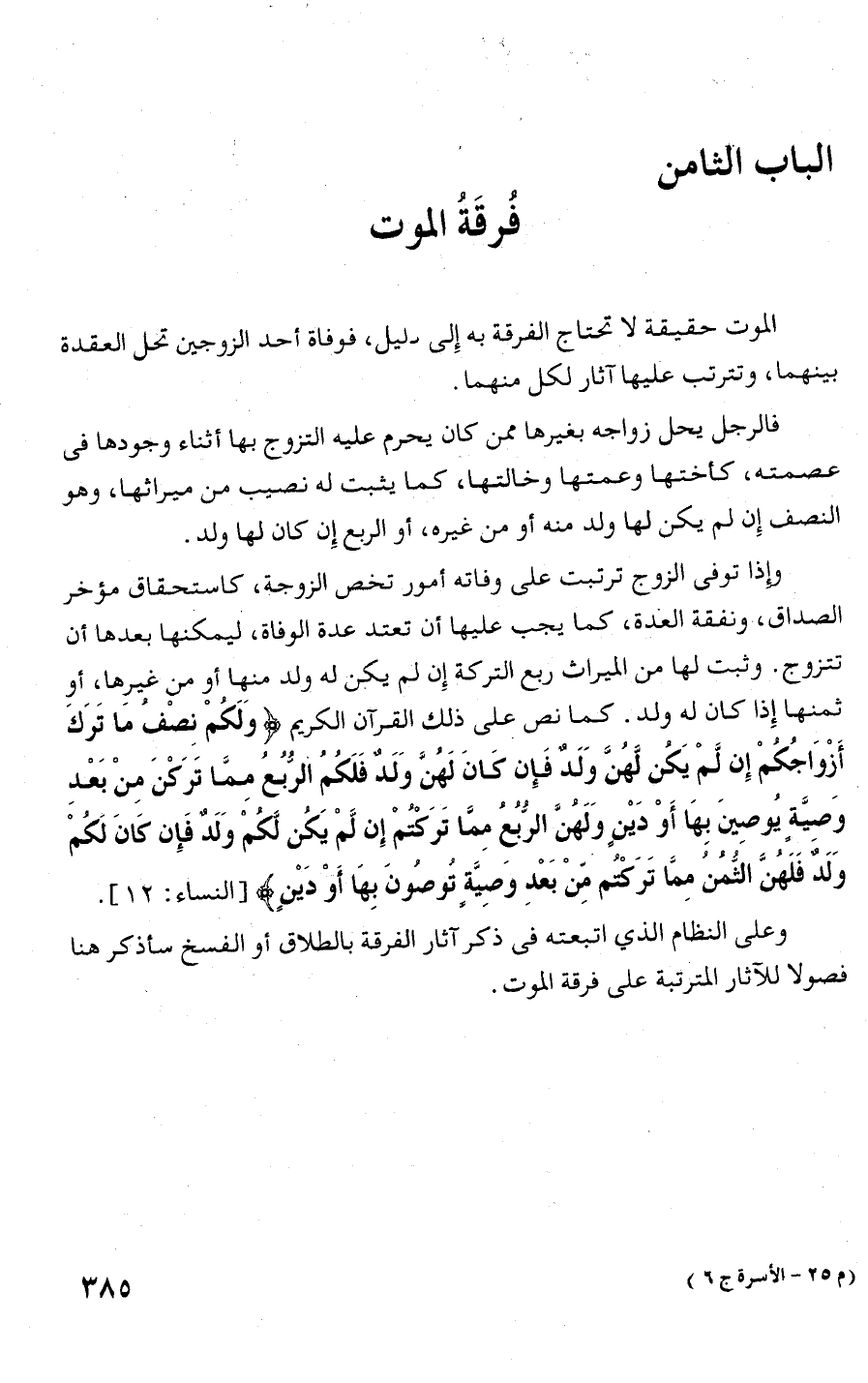 فصولا للآثار المترتبة على فرقة الموت.