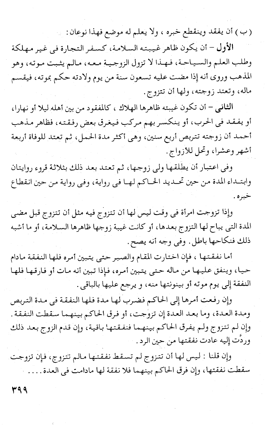 المدة التى يباح لها التزوج بعدها، أو كانت غيبة زوجها ظاهرها السلامة، أو ما أشبه