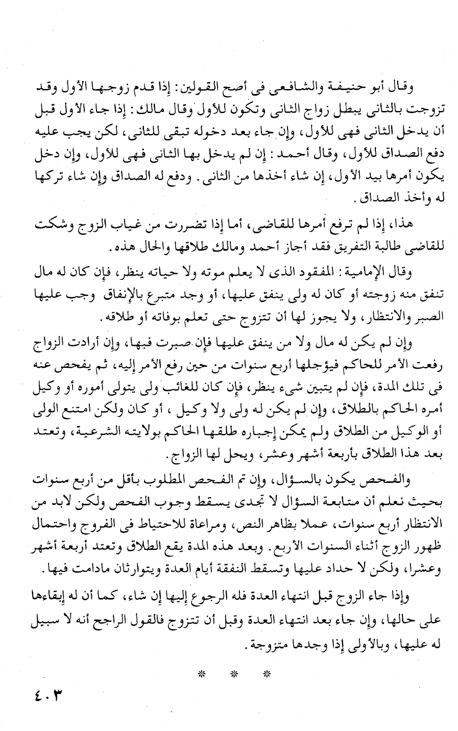 الانتظار أربع سنوات، عملا جظاهر النص، ومراعاة للاحتياط فى الفروج واحتمال