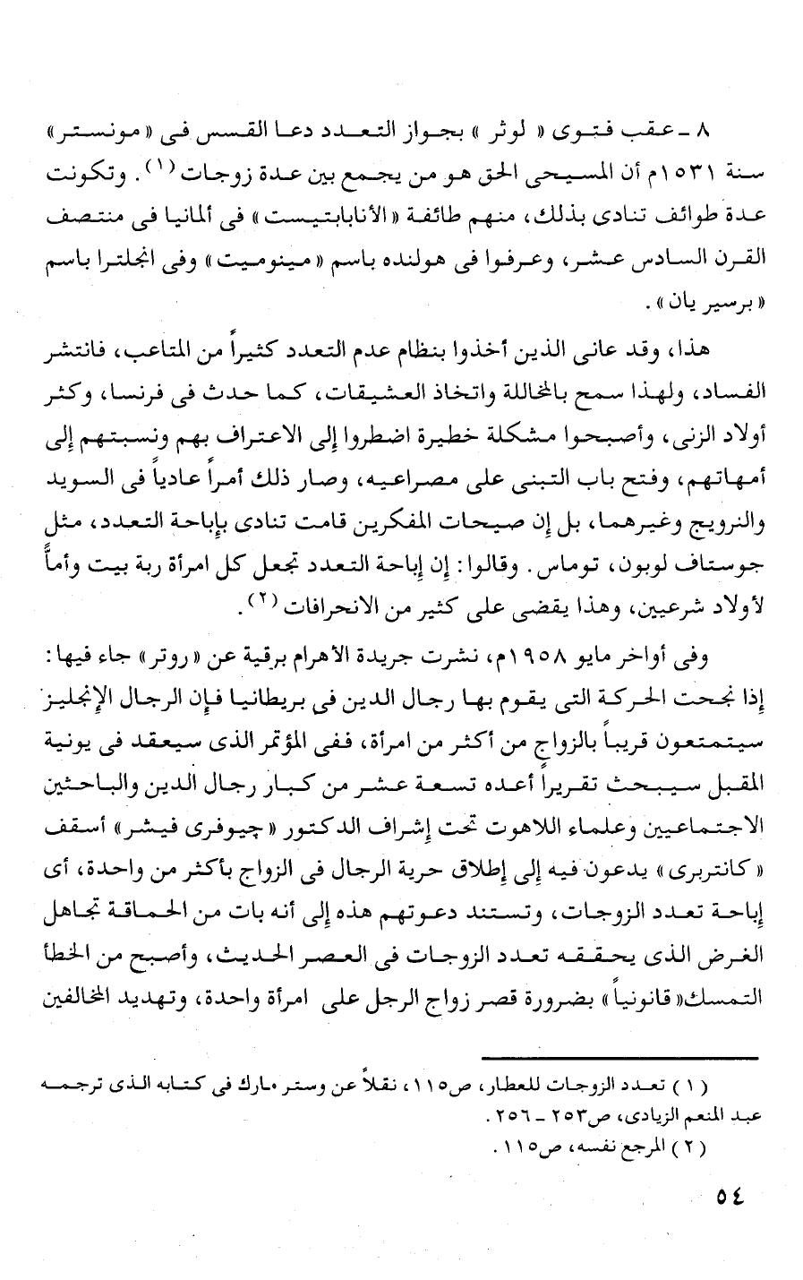 (1) تعدد الزوجات للعطار، ص ه 1 1، نقلا عن وستر 5 طرك فى كتابه الذى ترجمه