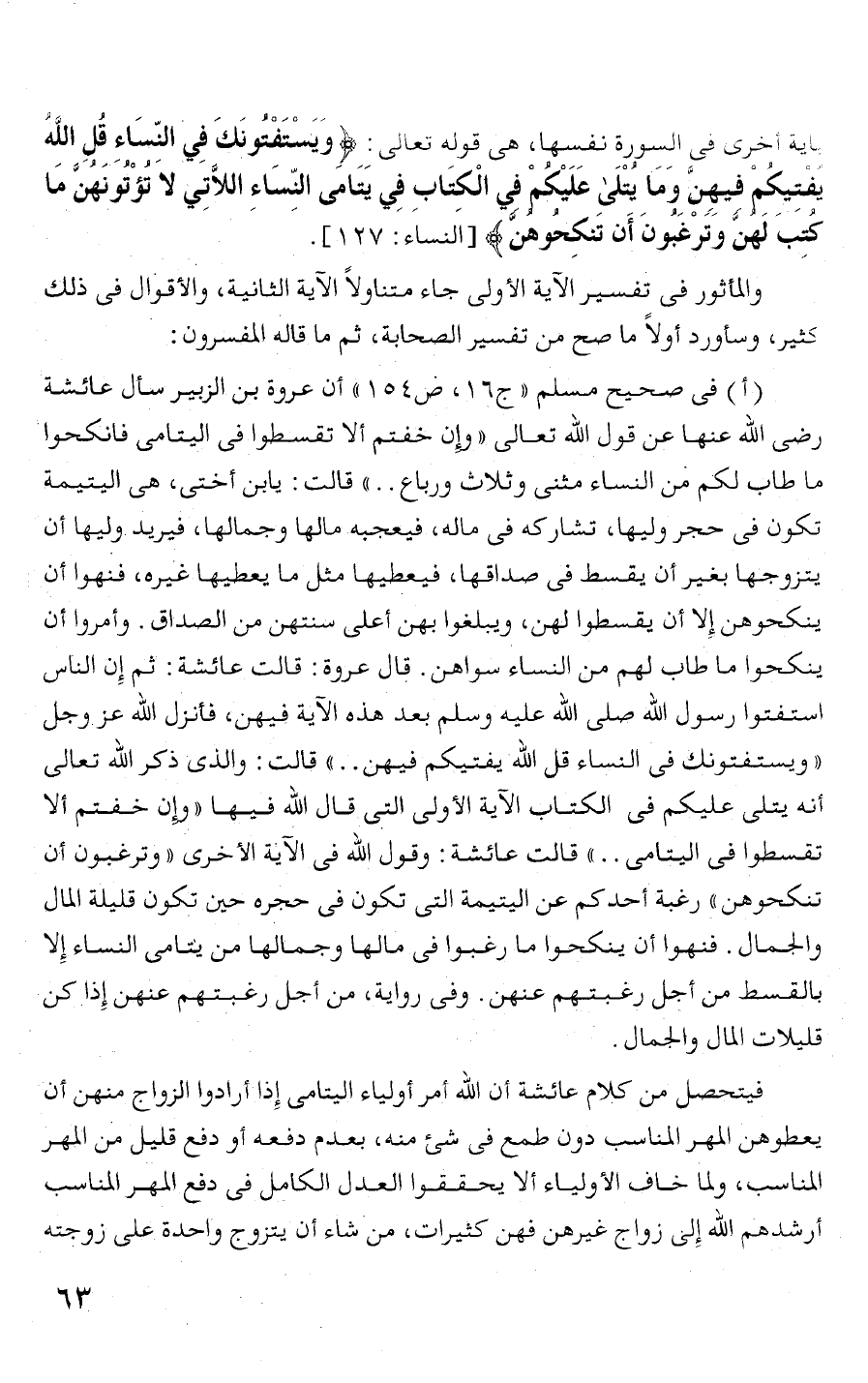 ما طاب لكم من النساء مثنى وثلاث ورباع. . " قال!: يابن أختى، هى اليتيمة