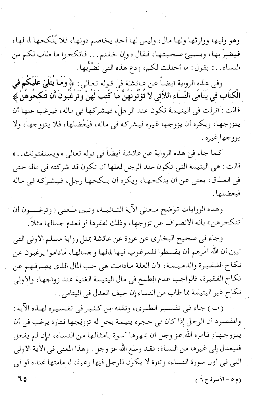 قالت: أنزلت فى اليتيمه تكودت عند الرجل، فيشر! ها فى ماله، شمرغب عنها أ ن