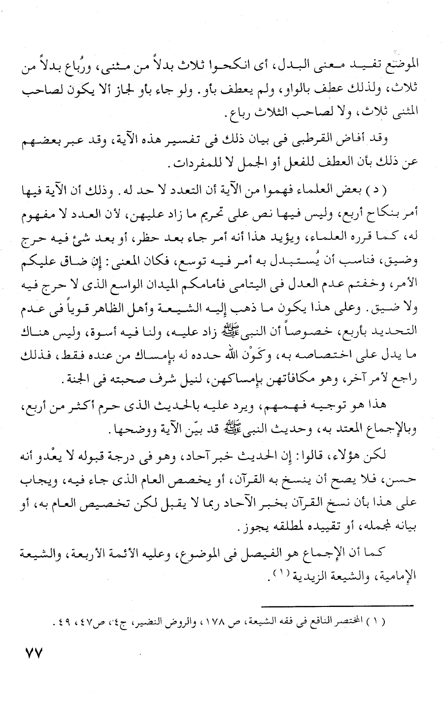 (د) بعضر العلماء فهموا من الاية أن التعدد لا حد له. وذلك أن الآية فيها