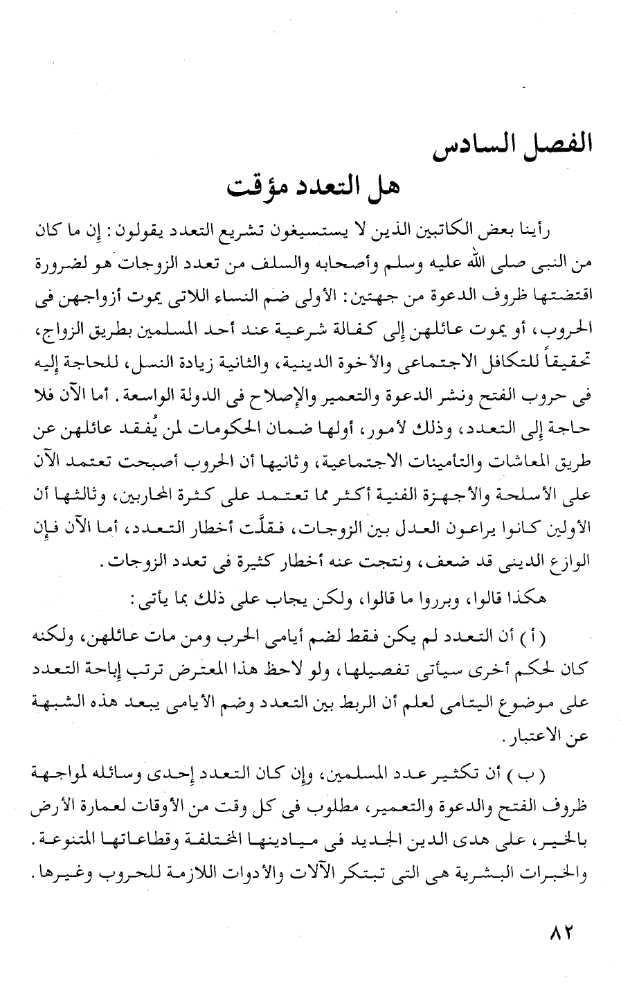 (أ) أن التعدد لم يكن فقط لضم أيامى الحرب ومن مات عائلهن، ولكنه