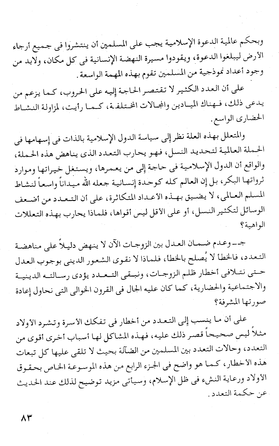 المسلم العالمى، لا يضيق بهذه الأ عداد المتكاثرة، على أن التعدد من أضعف