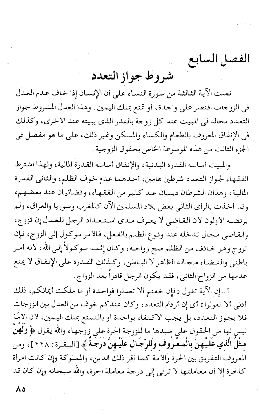 فى الزوجات اقتصر على واحدة، أو تمتع بملك اليمين. وهذا العدل المشروط لجواز