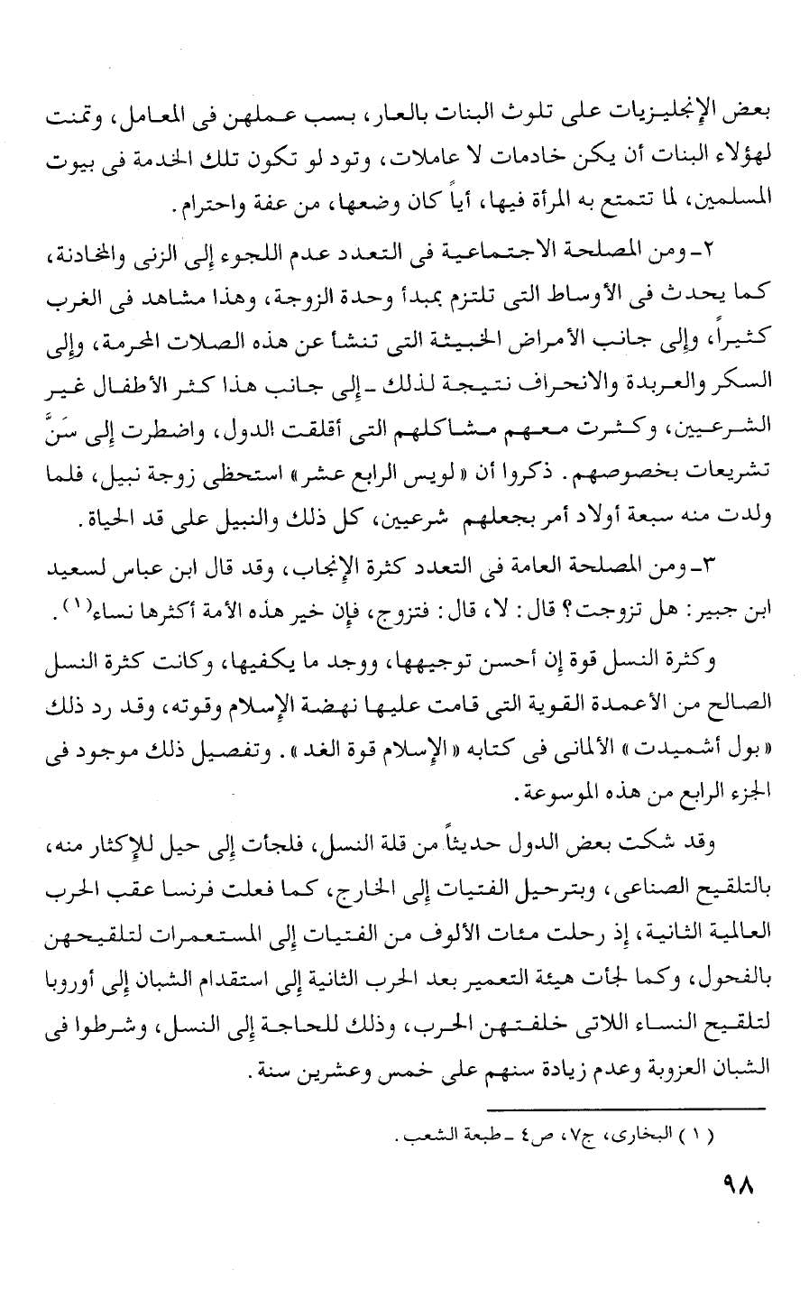 2 - ومن المصلحة الاجتماعية قى التعدد عدم الل! ضء إلى الزنى والخادنة،