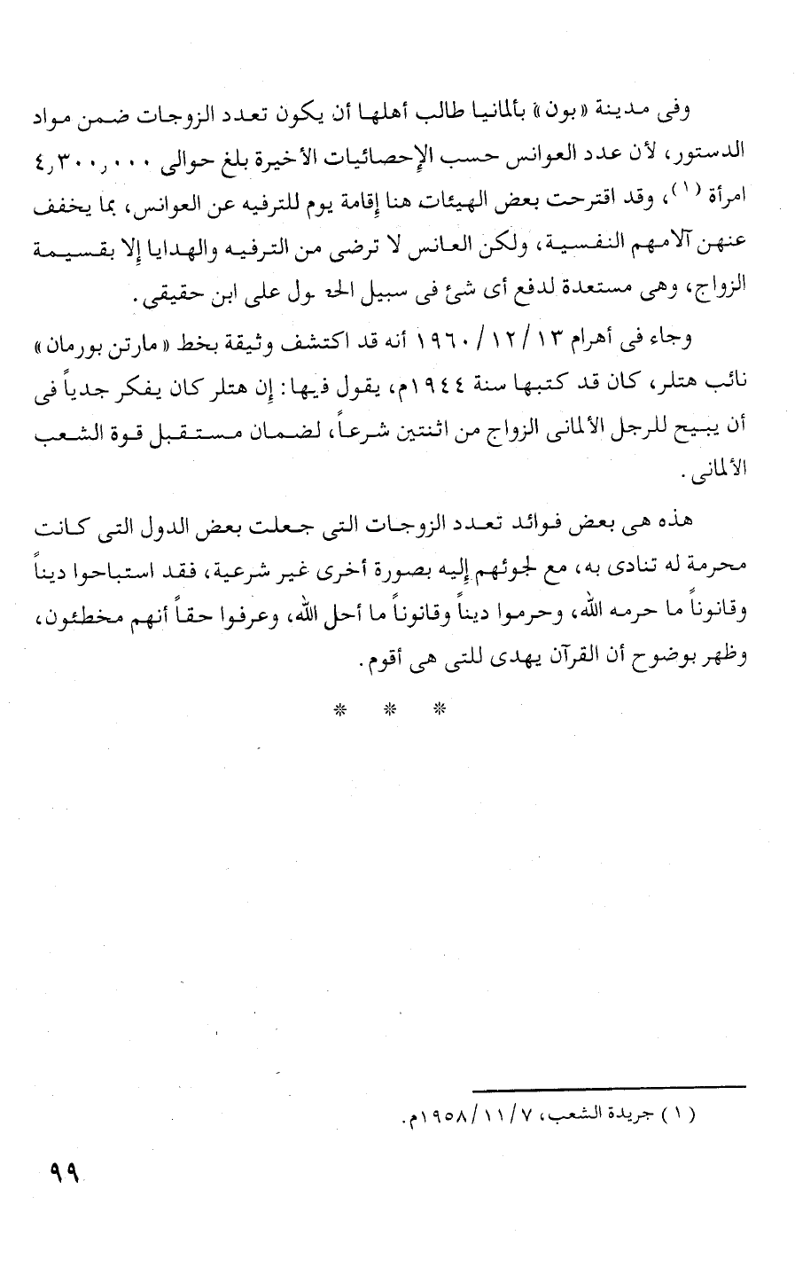 أن يبيح للرجل الأ لمانى الزواج من اثنتهيئ شرعا، لضمان مستقبل قوة الشعب
