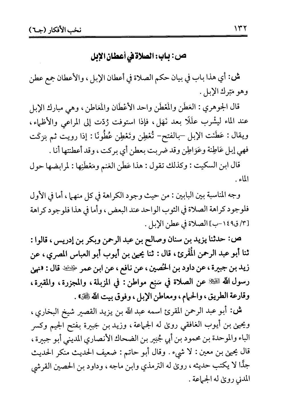ش: أي هذا باب في بيان حكم الصلاة في أعطان الإبل، والأعطان جمع عطن وهو مَبْرك الإبل.