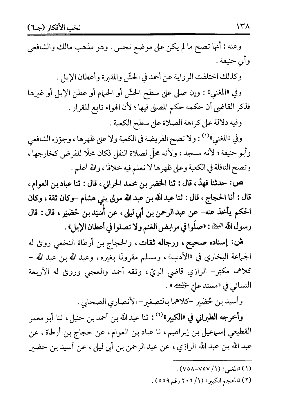 ص: حدثنا فهدٌ، قال: ثنا الخضر بن محمَّد الحراني، قال: ثنا عباد بن العوام، قال: أنا الحجاج، قال: ثنا عبد الله بن عبد الله مولى بني هشام وكان ثقة، وكان الحكم يأخذ عنه- عن عبد الرحمن بن أبي ليلى، عن أُسَيْد بن حُضَيْر، قال: قال رسول الله - عليه السلام -: "صلّوا في مرابض الغنم ولا تصلوا في أعطان الإبل".