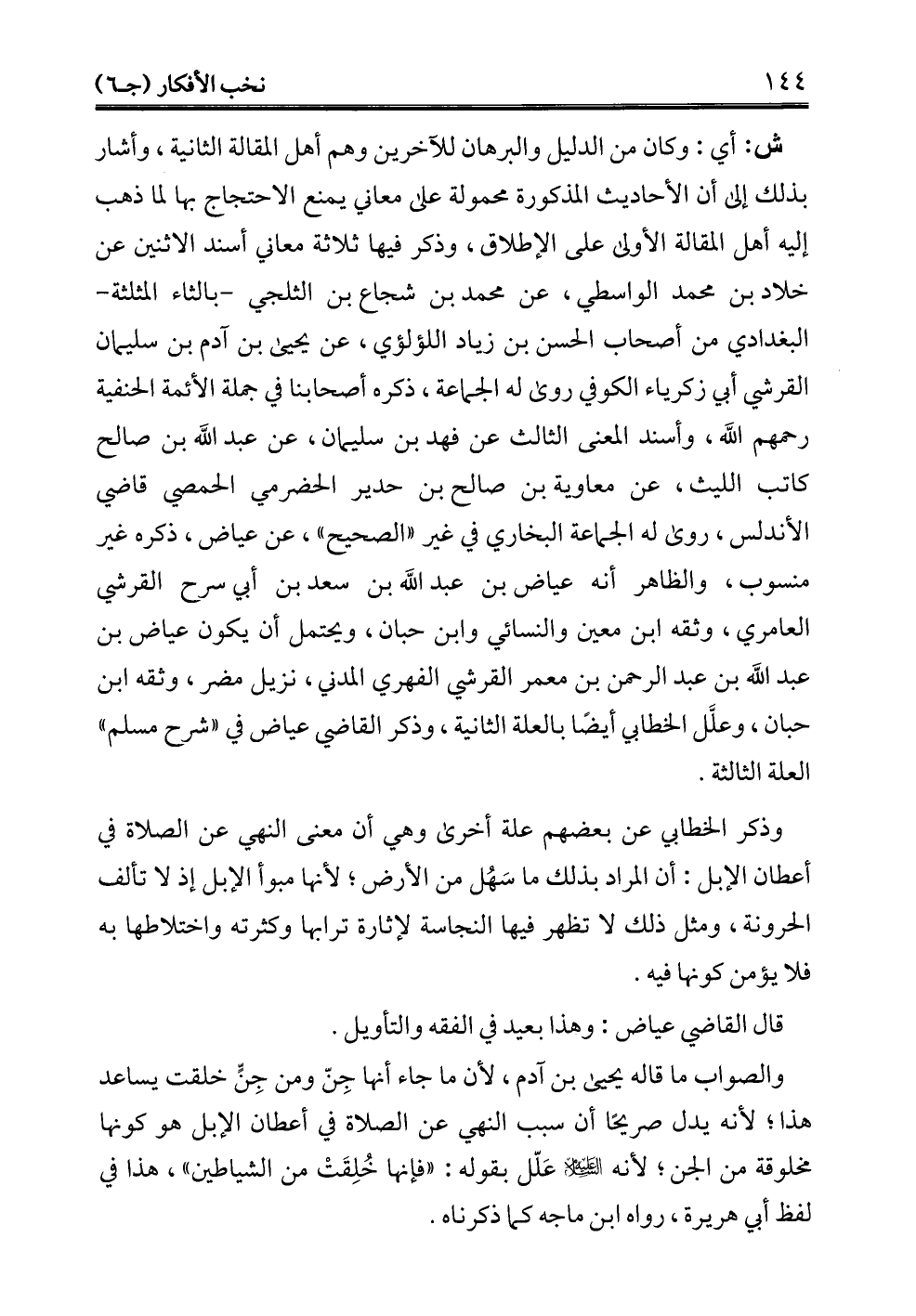 والصواب ما قاله يحيى بن آدم, لأن ما جاء أنها جِنّ ومن جِنٍّ خلقت يساعد هذا؛ لأنه يدل صريحًا أن سبب النهي عن الصلاة في أعطان الإبل هو كونها مخلوقة من الجن؛ لأنه - عليه السلام - عَلّل بقوله: "فإنها خُلِقَتْ من الشياطين"، هذا في لفظ أبي هريرة، رواه ابن ماجه كما ذكرناه.