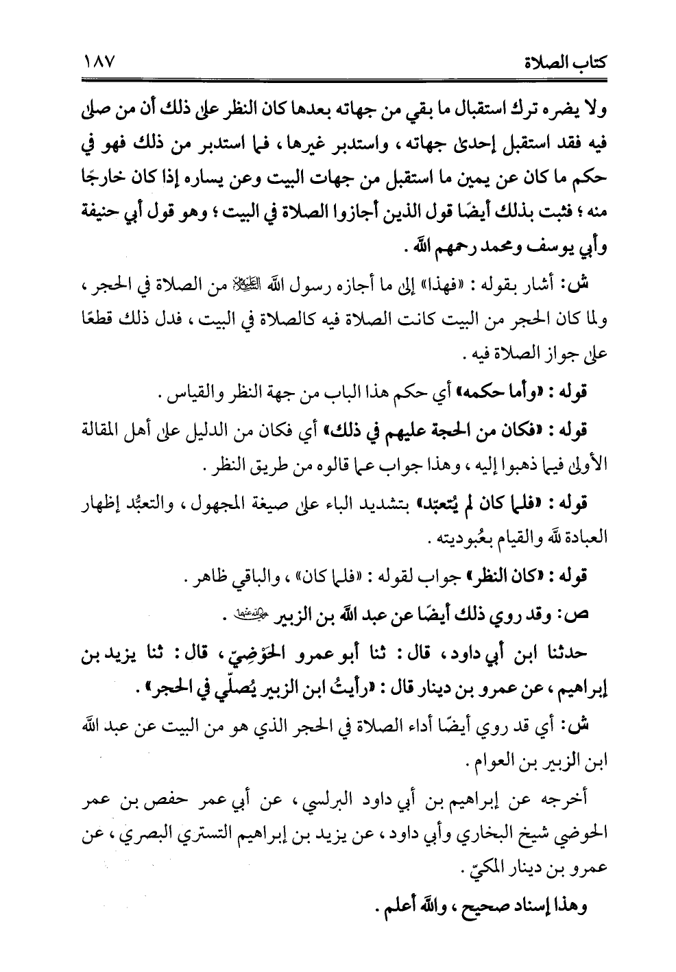 ش: أي قد روي أيضًا أداء الصلاة في الحجر الذي هو من البيت عن عبد الله ابن الزبير بن العوام.
