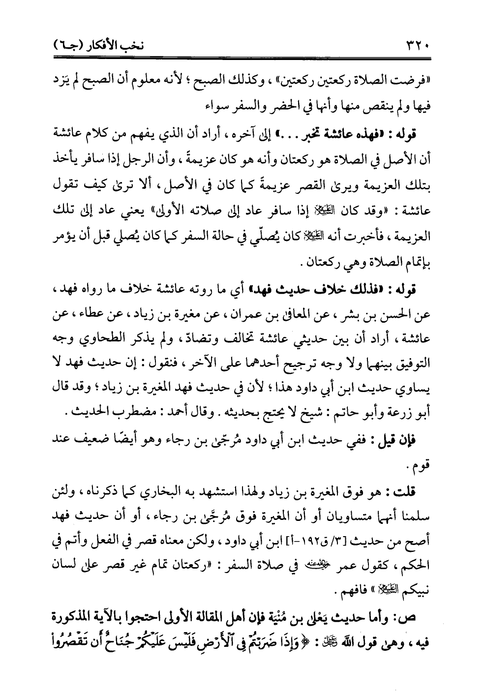 قلت: هو فوق المغيرة بن زياد ولهذا استشهد به البخاري كما ذكرناه، ولئن سلمنا أنهما متساويان أو أن المغيرة فوق مُرجَّى بن رجاء، أو أن حديث فهد أصح من حديث ابن أبي داود، ولكن معناه قصر في الفعل وأتم في الحكم، كقول عمر- رضي الله عنه - في صلاة السفر: "ركعتان تمام غير قصر على لسان نبيكم - عليه السلام -" فافهم.