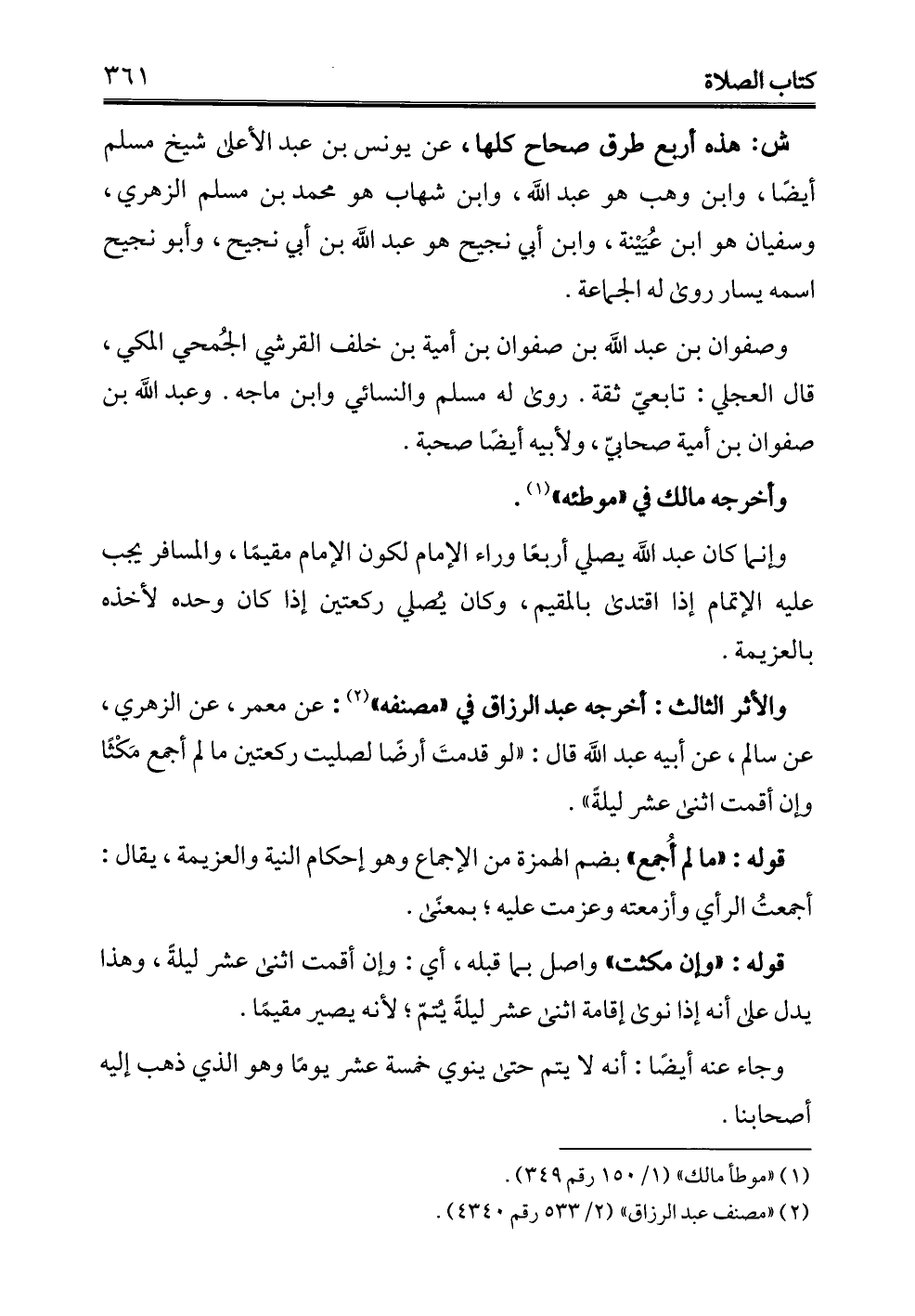 والأثر الثالث: أخرجه عبد الرزاق في "مصنفه" (¬2): عن معمر، عن الزهري، عن سالم، عن أبيه عيد الله قال: "لو قدمتَ أرضًا لصليت ركعتين ما لم أجمع مَكْثًا وإن أقمت أثنى عشر ليلةً".