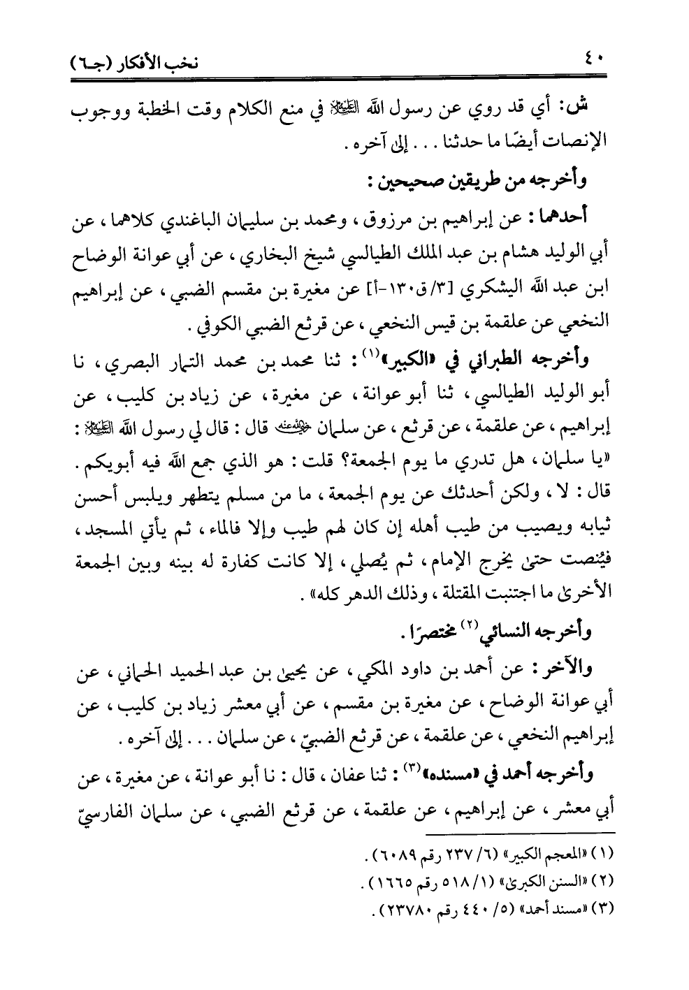ش: أي قد روي عن رسول الله - عليه السلام - في منع الكلام وقت الخطبة ووجوب الإنصات أيضًا ما حدثنا ... إلى آخره.