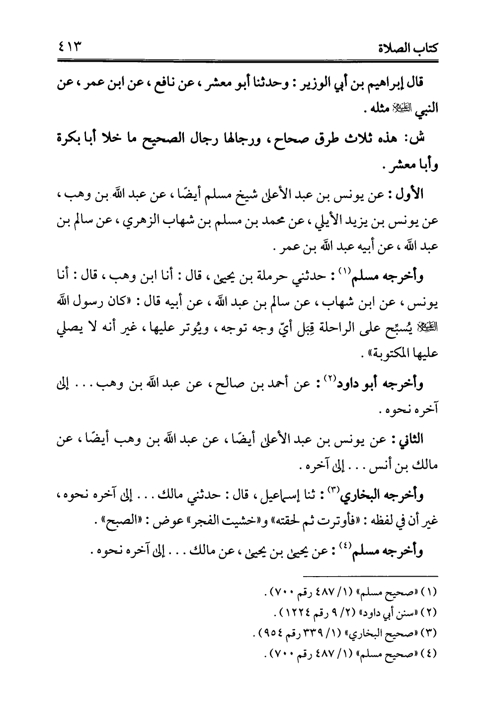 الأول: عن يونس بن عبد الأعلى شيخ مسلم أيضًا، عن عبد الله بن وهب، عن يونس بن يزيد الأيلي، عن محمد بن مسلم بن شهاب الزهري، عن سالم بن عبد الله، عن أبيه عبد الله بن عمر.