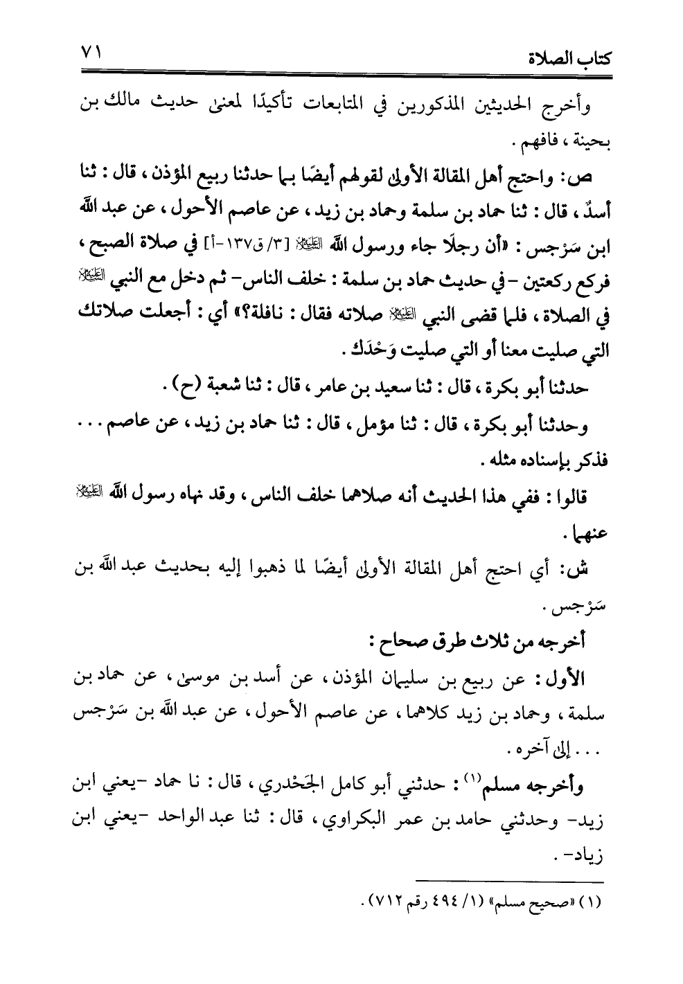 (¬1) "صحيح مسلم" (1/ 494 رقم 712).