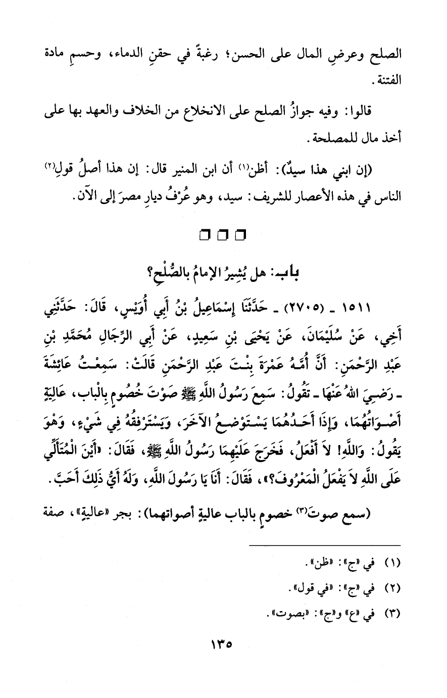 باب: هل يُشِيرُ الإِمامُ بالصُّلْحِ؟