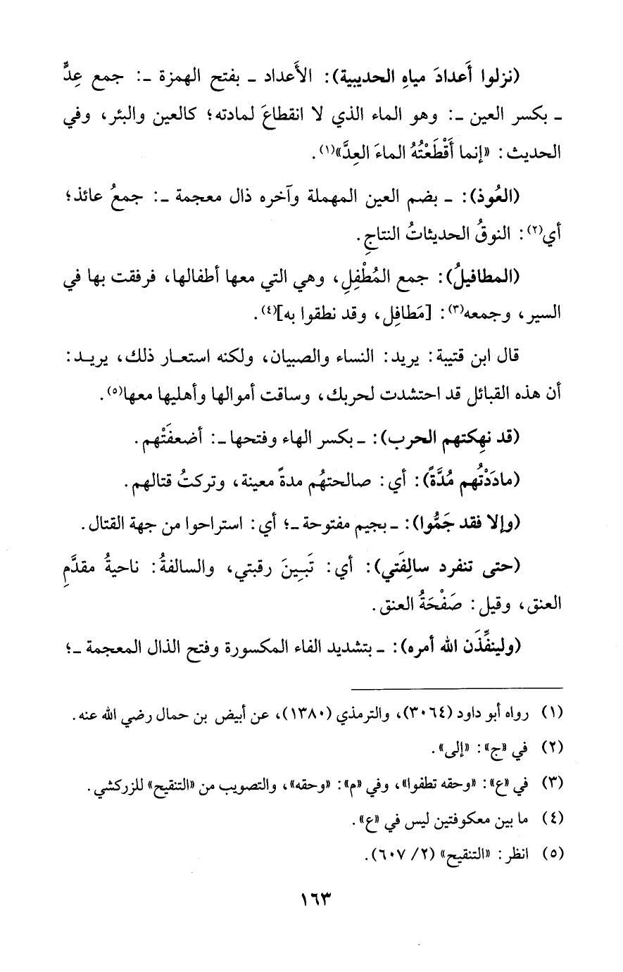 (نزلوا أَعدادَ مياهِ الحديبية): الأَعداد -بفتح الهمزة-: جمع عِدٍّ -بكسر العين-: وهو الماء الذي لا انقطاعَ لمادته؛ كالعين والبئر، وفي الحديث: "إنما أَقْطَعْتُهُ الماءَ العِدَّ" (¬1).