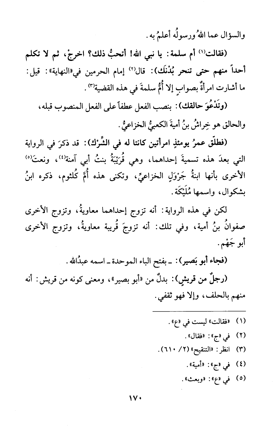 (فقالت (¬1) أم سلمة: يا نبي الله! أتحبُّ ذلك؟ اخرجْ، ثم لا تكلم أحداً منهم حتى تنحر بُدْنَك): قال (¬2) إمام الحرمين في "النهاية": قيل: ما أشارت امرأةٌ بصوابٍ إلا أُمُّ سلمةَ في هذه القضية (¬3).