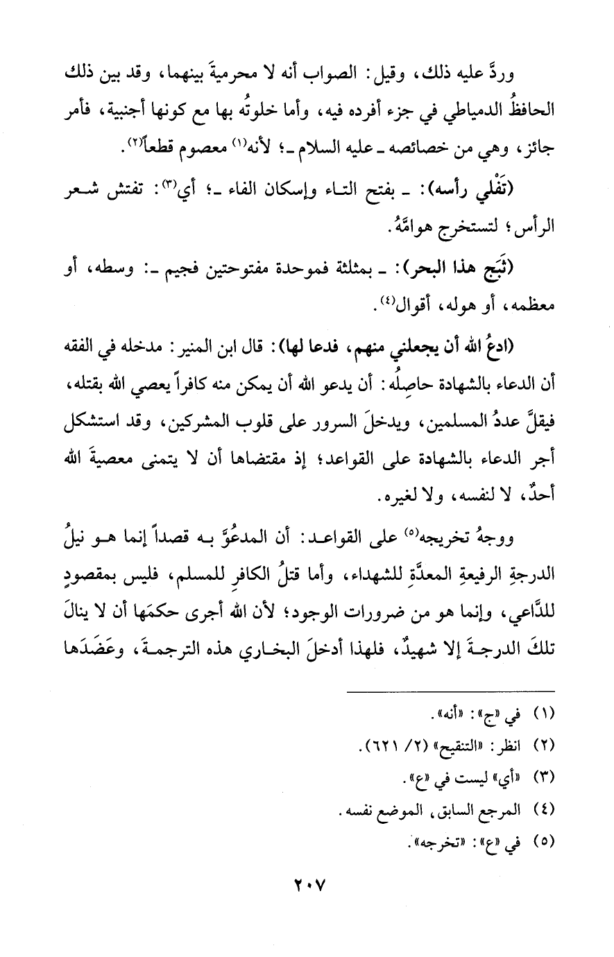 ووجهُ تخريجه (¬5) على القواعد: أن المدعُوَّ به قصداً إنما هو نيلُ الدرجةِ الرفيعةِ المعدَّةِ للشهداء، وأما قتلُ الكافرِ للمسلم، فليس بمقصودٍ للدَّاعي، وإنما هو من ضرورات الوجود؛ لأن الله أجرى حكمَها أن لا ينالَ تلكَ الدرجةَ إلا شهيدٌ، فلهذا أدخلَ البخاري هذه الترجمةَ، وعَضَدَها