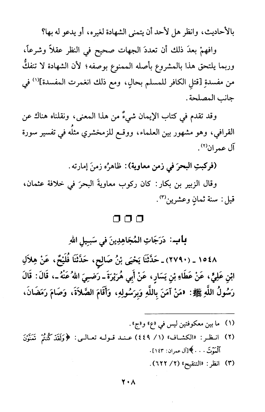 (¬2) انظر: "الكشاف" (1/ 449) عند قوله تعالى: {وَلَقَدْ كُنْتُمْ تَمَنَّوْنَ الْمَوْتَ. . .} [آل عمران: 143].