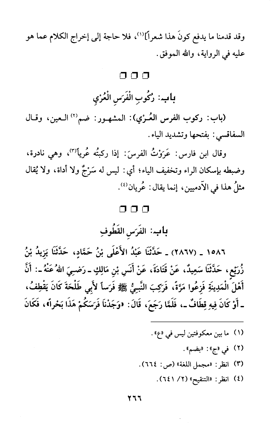 (باب: ركوب الفرس العُرْي): المشهور: ضم (¬2) العين، وقال السفاقسي: بفتحها وتشديد الياء.