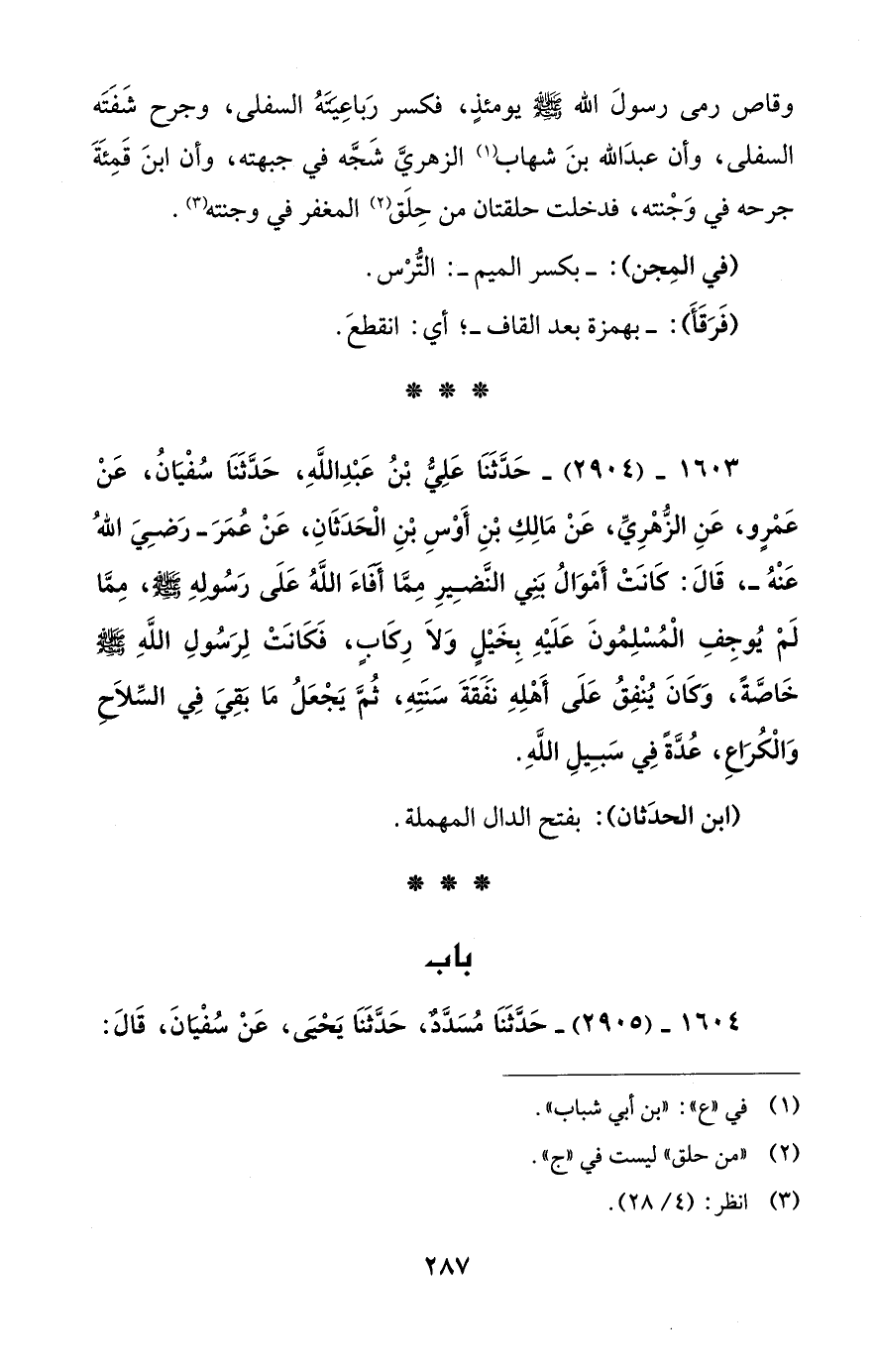 وقاص رمى رسولَ الله - صلى الله عليه وسلم - يومئذٍ، فكسر رَباعِيَتَهُ السفلى، وجرح شَفَتَه السفلى، وأن عبدَ الله بنَ شهاب (¬1) الزهريَّ شَجَّه في جبهته، وأن ابنَ قَمِئَةَ جرحه في وَجْنته، فدخلت حلقتان من حِلَق (¬2) المغفر في وجنته (¬3).
