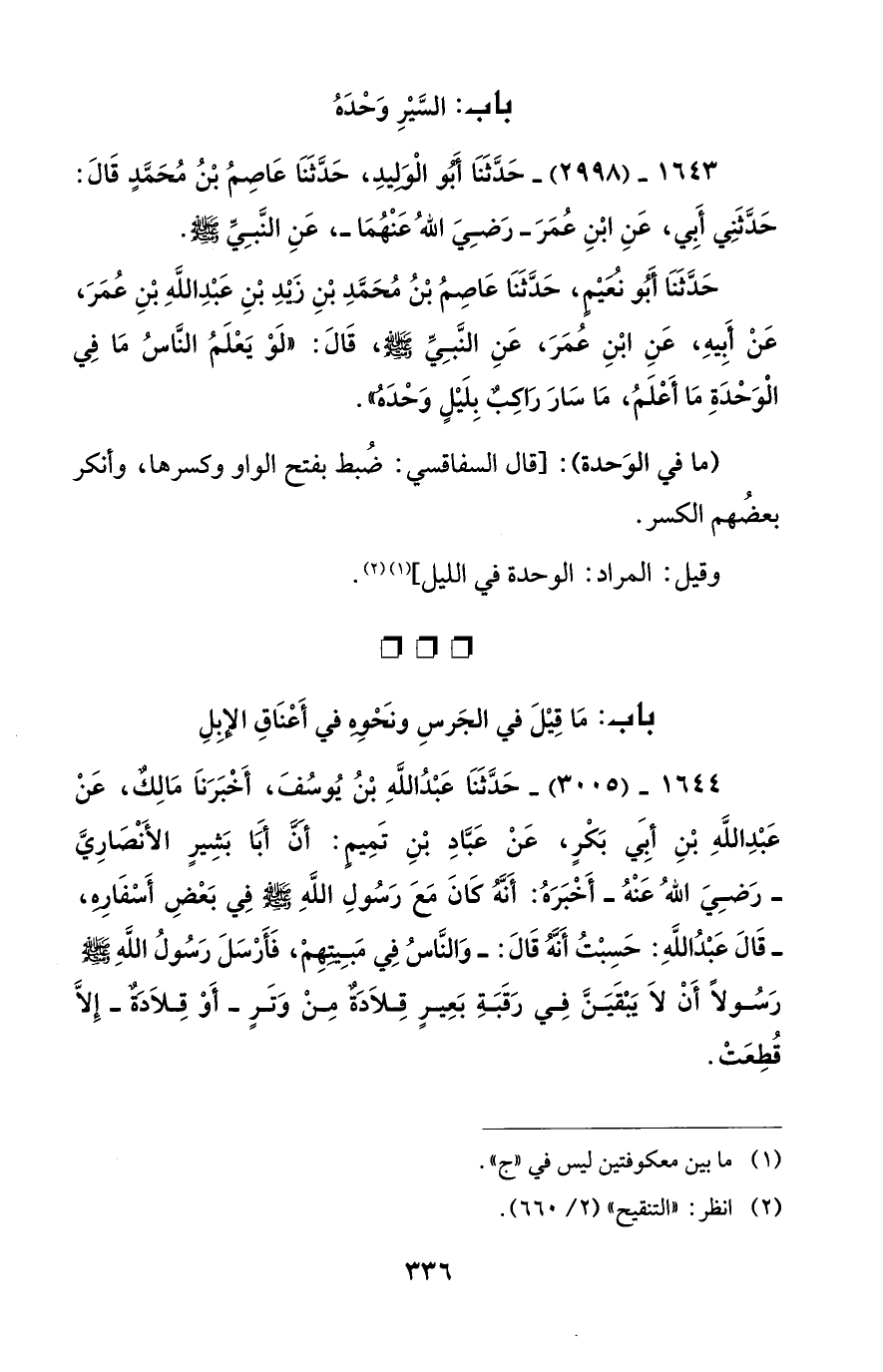 باب: السَّيْرِ وَحْدَهُ