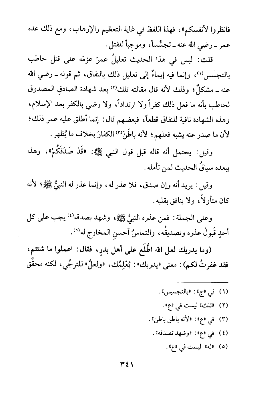 فانظروا لأنفسكم"، فهذا اللفظ في غاية التعظيم والإرهاب، ومع ذلك عده عمر -رضي الله عنه- تجسُّساً، وموجِباً للقتل.