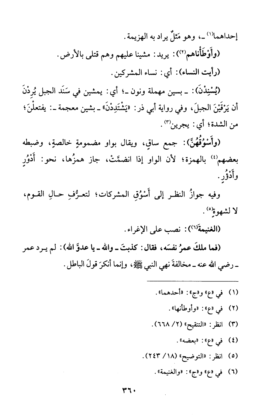 (يُسْنِدْنَ): -بسين مهملة ونون-؛ أي: يمشين في سَنَد الجبل يُرِدْنَ أن يَرْقَيْنَ الجبلَ، وفي رواية أبي ذر: "يَشْتَدِدْنَ" -بشين معجمة-: يفتعلْنَ؛ من الشدة؛ أي: يجرين (¬3).