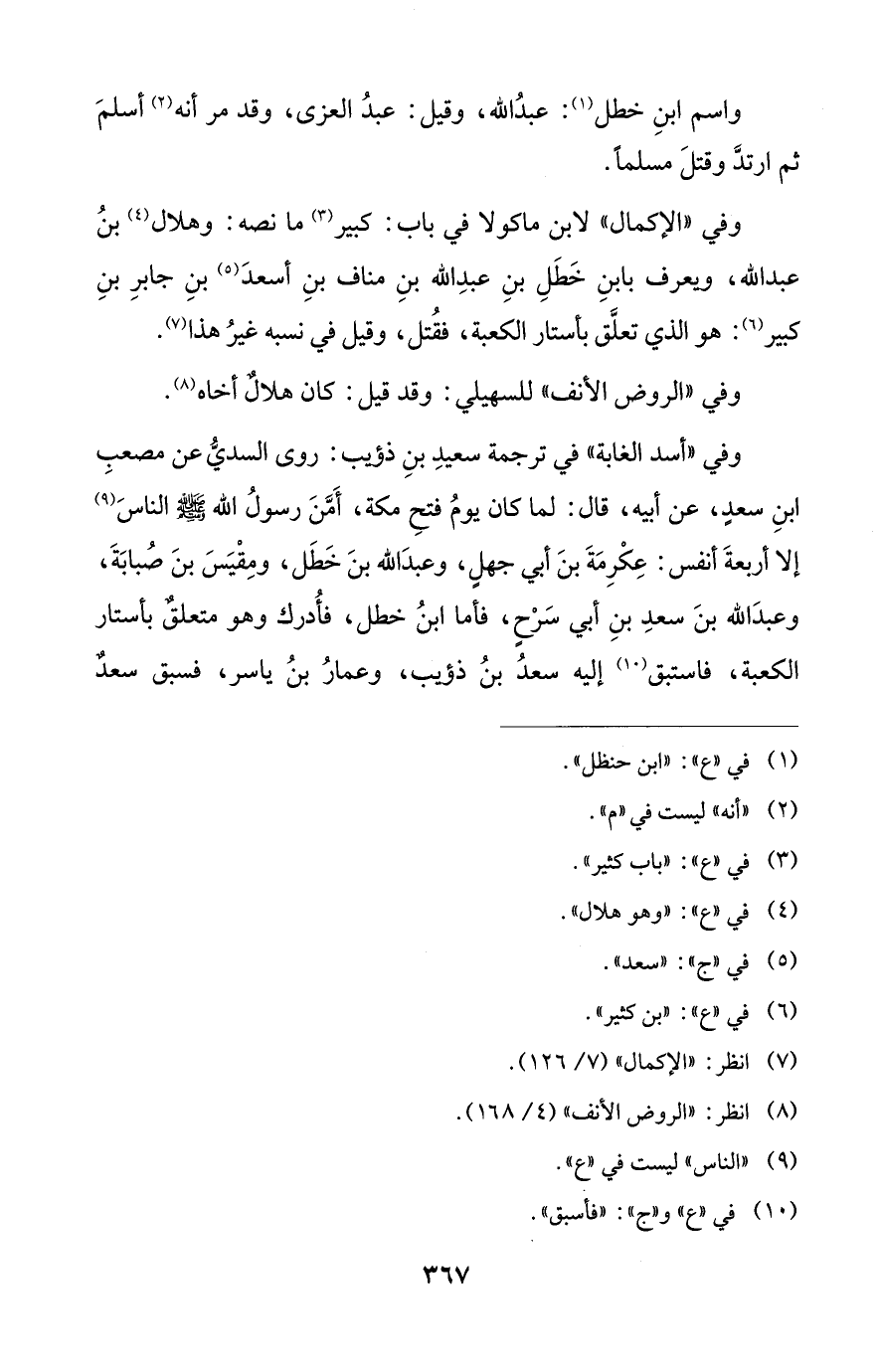 وفي "الإكمال" لابن ماكولا في باب: كبير (¬3) ما نصه: وهلال (¬4) بنُ عبد الله، ويعرف بابنِ خَطَلِ بنِ عبدِ الله بنِ مناف بنِ أسعدَ (¬5) بنِ جابرِ بنِ كبير (¬6): هو الذي تعلَّق بأستار الكعبة، فقُتل، وقيل في نسبه غيرُ هذا (¬7).