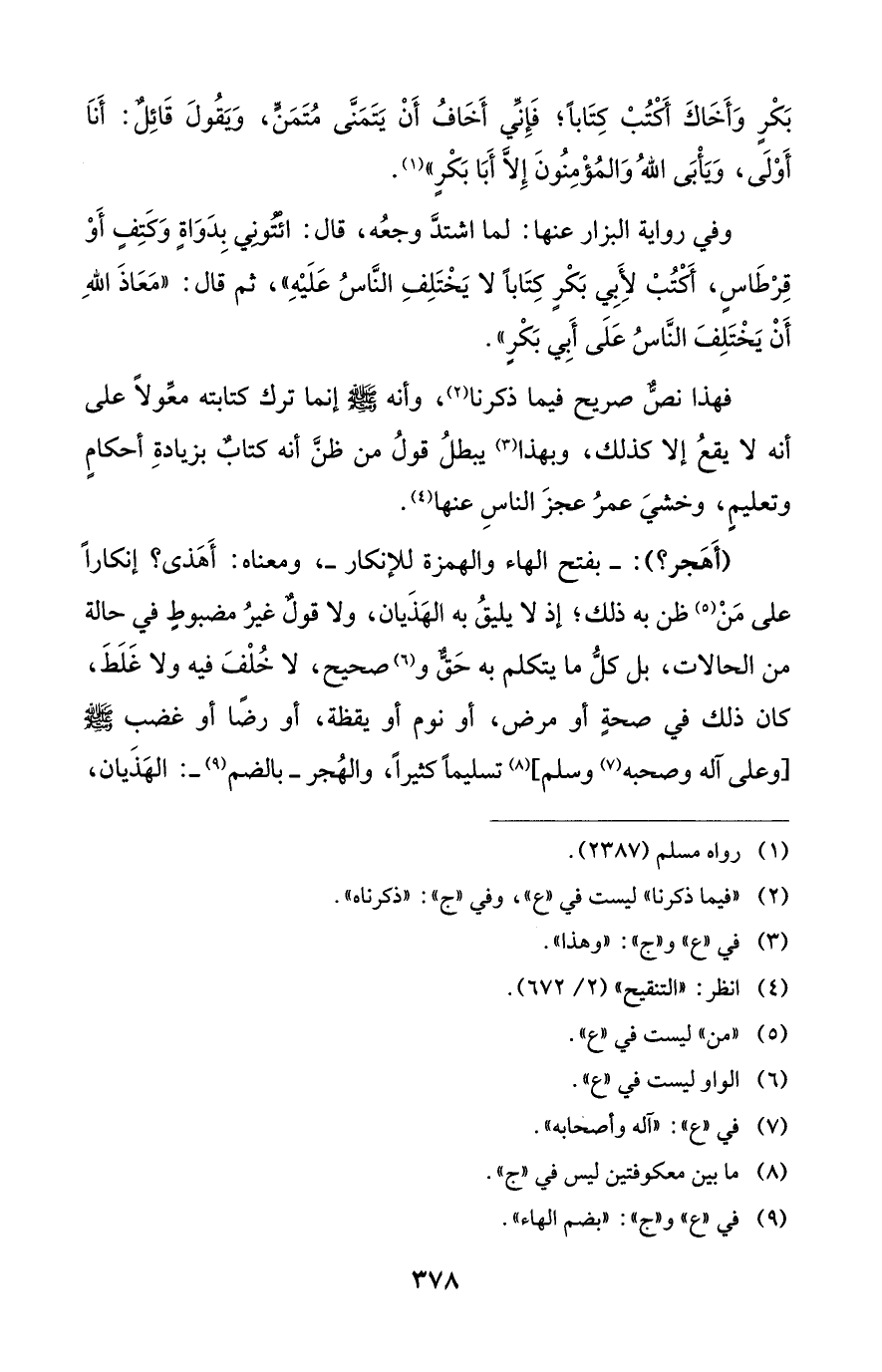 فهذا نصٌّ صريح فيما ذكرنا (¬2)، وأنه - صلى الله عليه وسلم - إنما ترك كتابته معِّولاً على أنه لا يقعُ إلا كذلك، وبهذا (¬3) يبطلُ قولُ من ظنَّ أنه كتابٌ بزيادةِ أحكامٍ وتعليمٍ، وخشيَ عمرُ عجزَ الناسِ عنها (¬4).