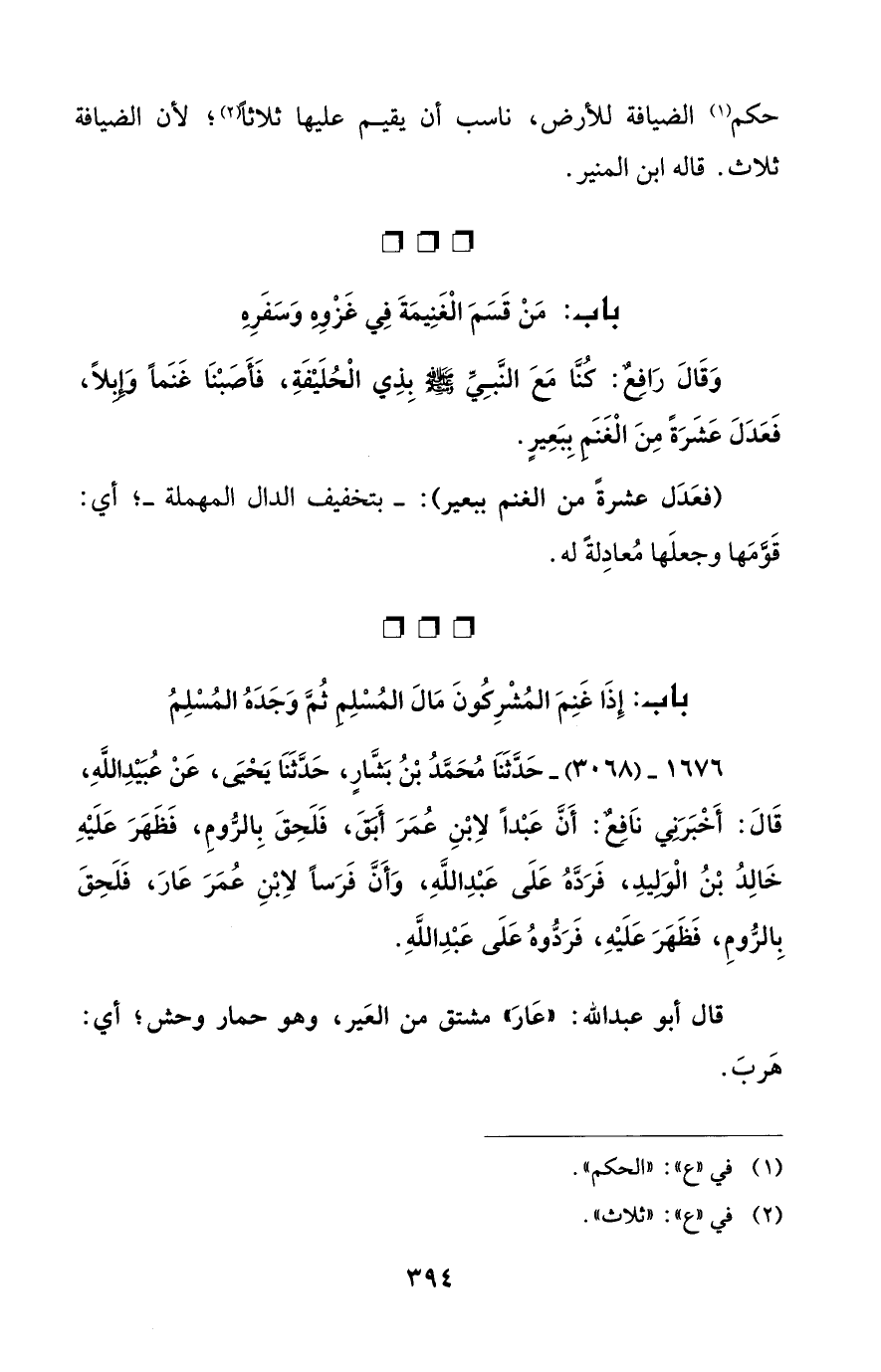 باب: إِذَا غَنِمَ المُشْرِكُونَ مَالَ المُسْلِم ثُمَّ وَجَدَهُ المُسْلِمُ