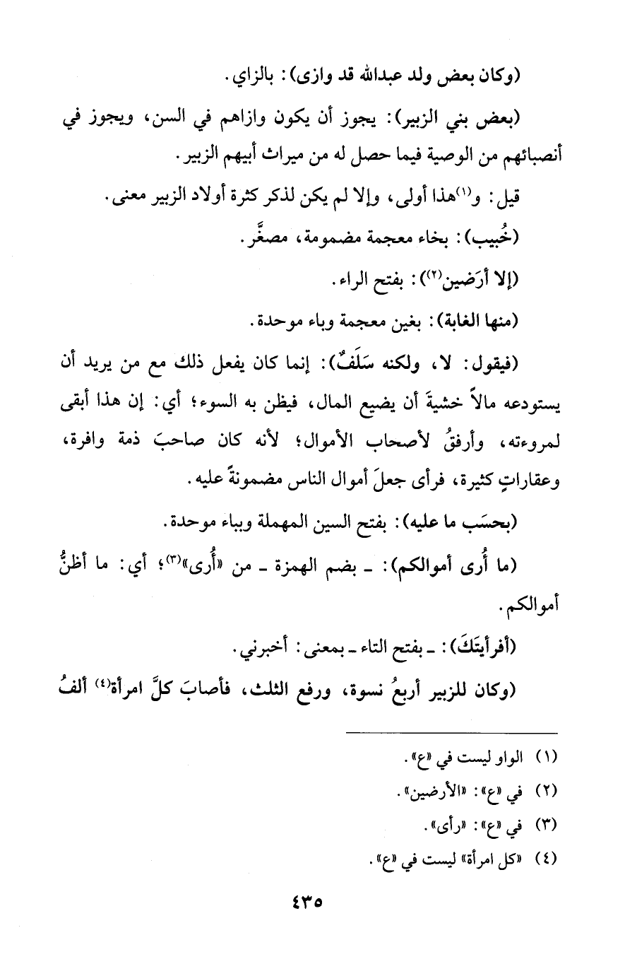 (بعض بني الزبير): يجوز أن يكون وازاهم في السن، ويجوز في أنصبائهم من الوصية فيما حصل له من ميراث أبيهم الزبير.
