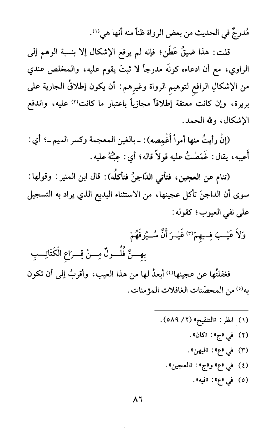 (تنام عن العجين، فتأتي الدّاجنُ فتأكلُه): قال ابن المنير: وقولها: سوى أن الداجنَ تأكل عجينها، من الاستثناء البديع الذي يراد به التسجيل على نفي العيوب؛ كقوله: