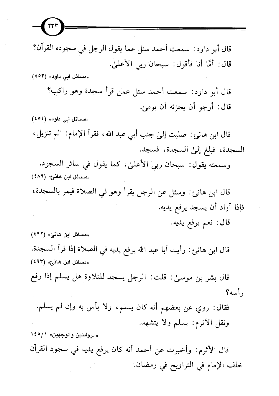 قال أبو داود: سمعت أحمد سئل عما يقول الرجل في سجوده القرآن؟
