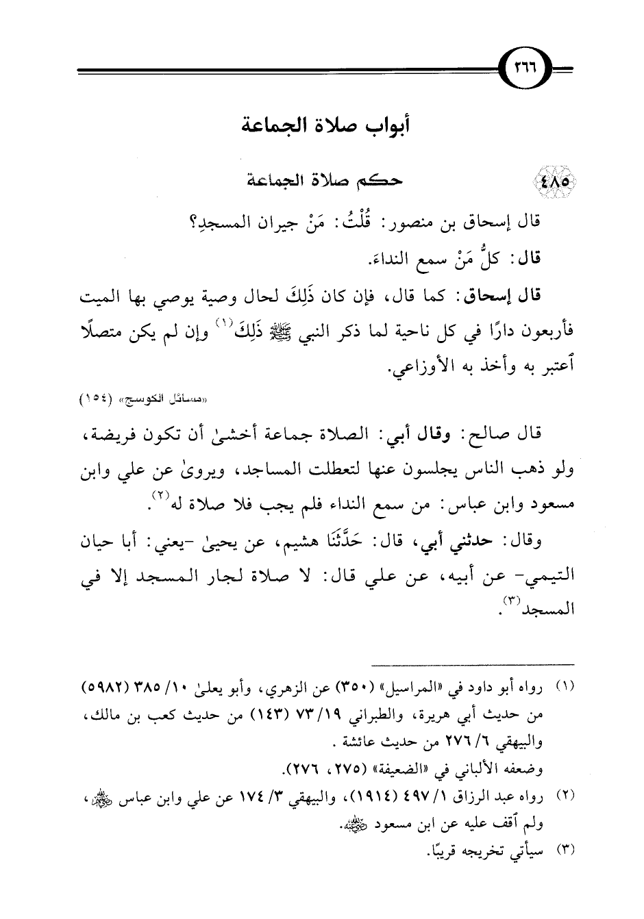 قال إسحاق بن منصور: قُلْتُ: مَنْ جيران المسجدِ؟