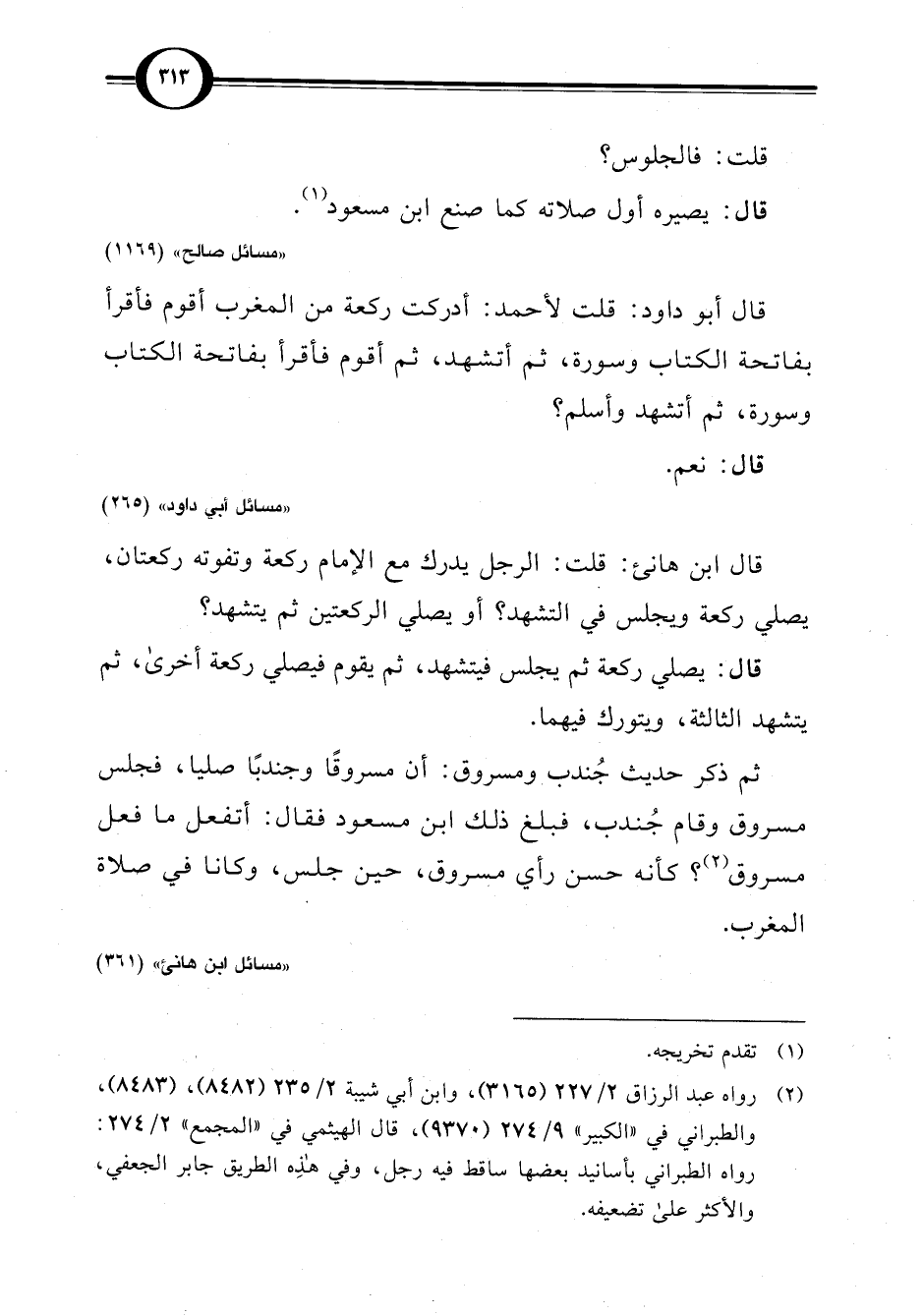 قال أبو داود: قلت لأحمد: أدركت ركعة من المغرب أقوم فأقرأ بفاتحة الكتاب وسورة، ثم أتشهد، ثم أقوم فأقرأ بفاتحة الكتاب وسورة، ثم أتشهد وأسلم؟