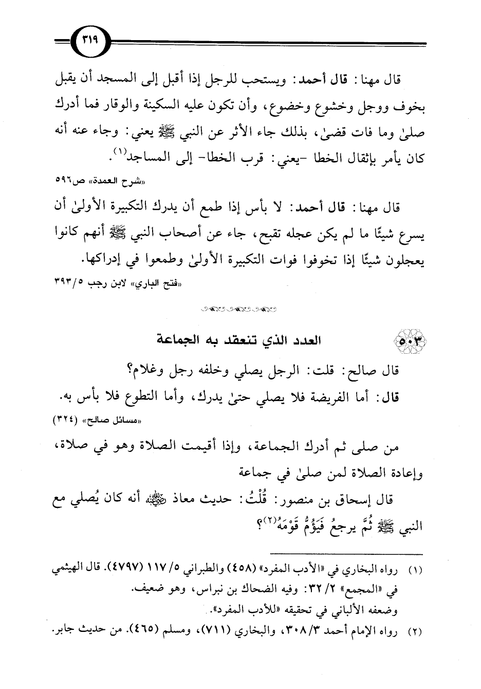 (¬2) رواه الإمام أحمد 3/ 308، والبخاري (711)، ومسلم (465). من حديث جابر.