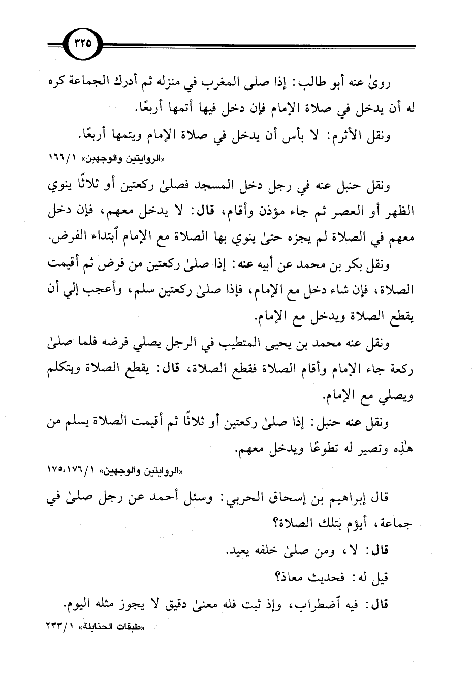 قال إبراهيم بن إسحاق الحربي: وسئل أحمد عن رجل صلى في جماعة، أيؤم بتلك الصلاة؟