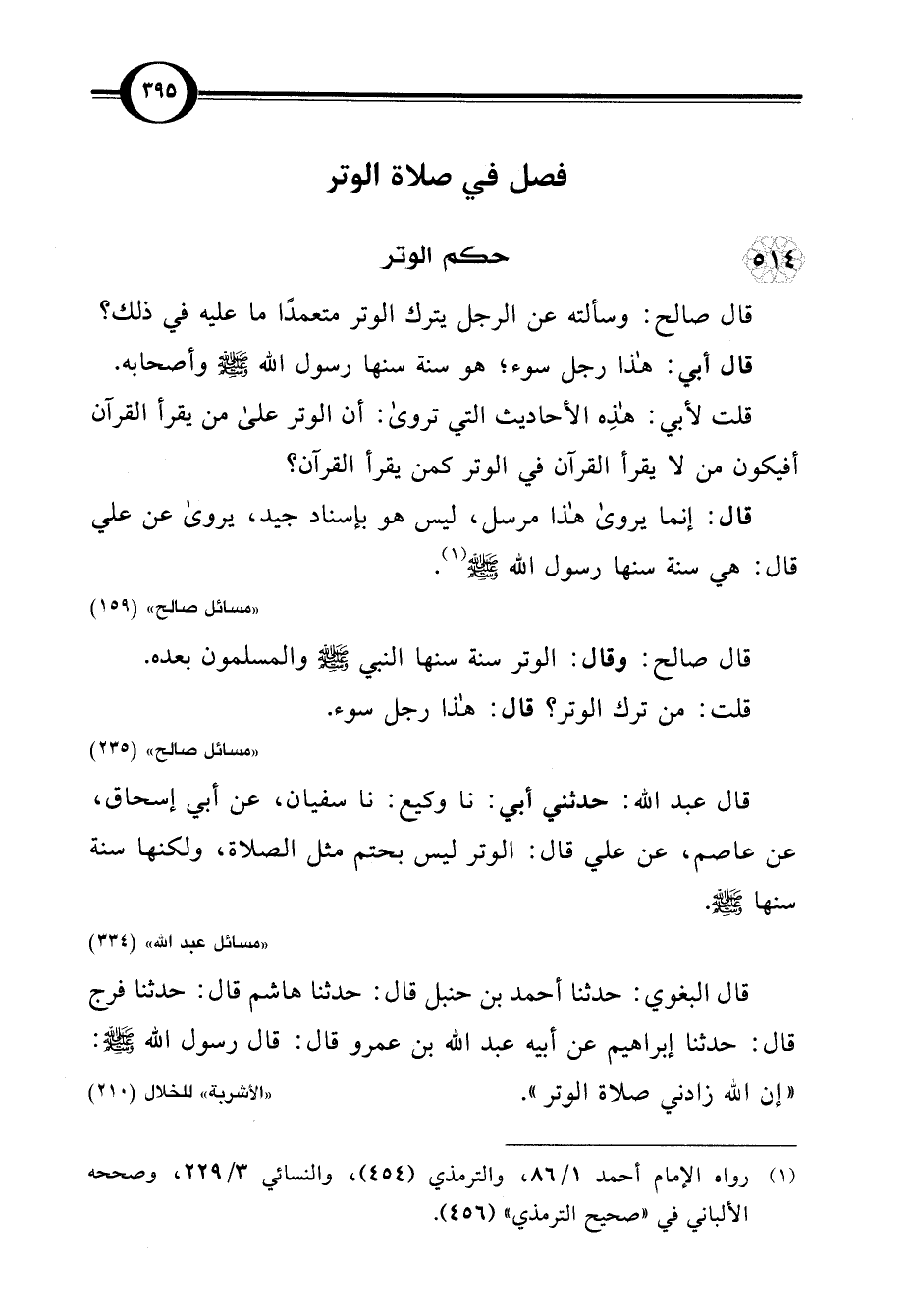 قال صالح: وقال: الوتر سنة سنها النبي -صلى اللَّه عليه وسلم- والمسلمون بعده.