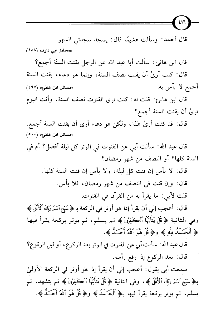 "مسائل ابن هانئ" (497)