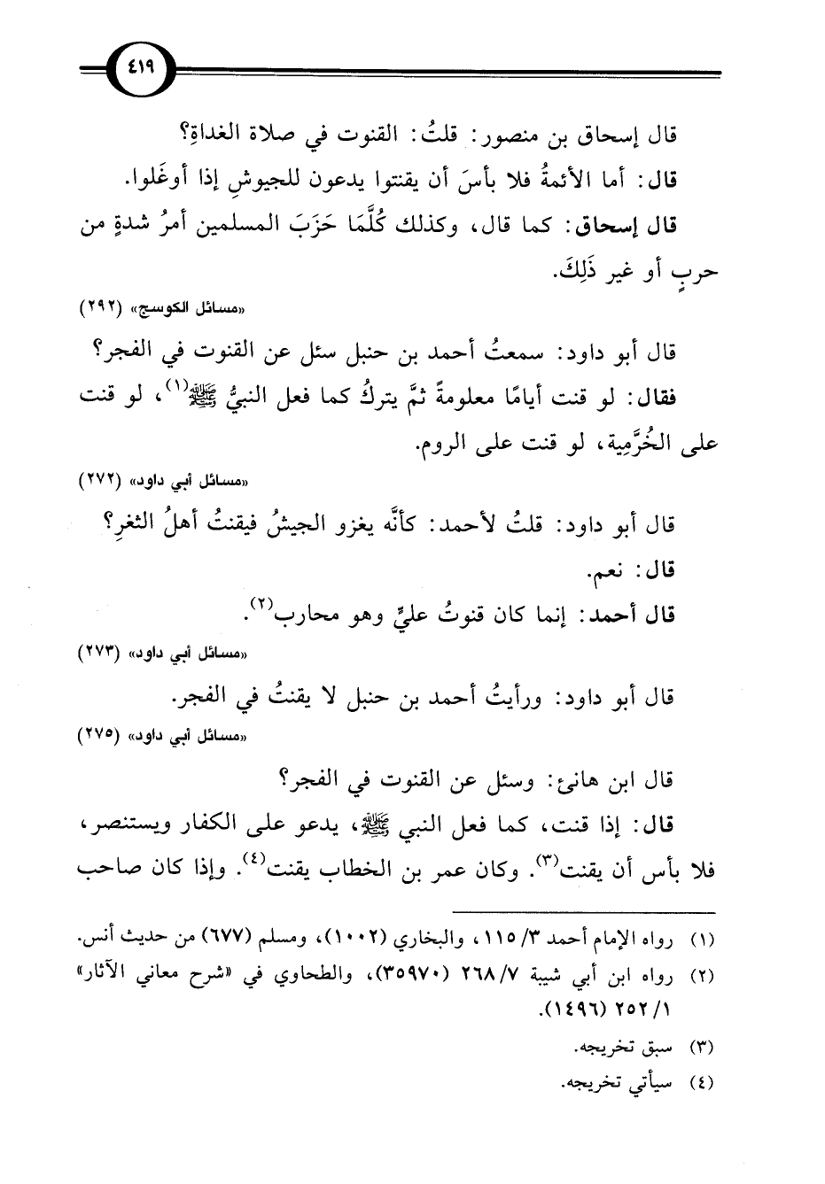 قال أبو داود: ورأيتُ أحمد بن حنبل لا يقنتُ في الفجر.