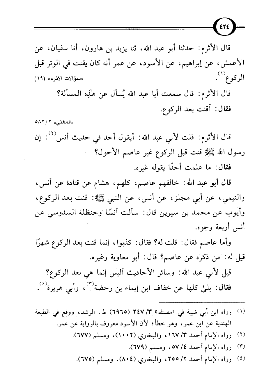 قال أبو عبد اللَّه: خالفهم عاصم، كلهم، هشام عن قتادة عن أنس، والتيمي، عن أبي مجلز، عن أنس، عن النبي -صلى اللَّه عليه وسلم-: قنت بعد الركوع، وأيوب عن محمد بن سيرين قال: سألت أنسًا وحنظلة السدوسي عن أنس أربعة وجوه.