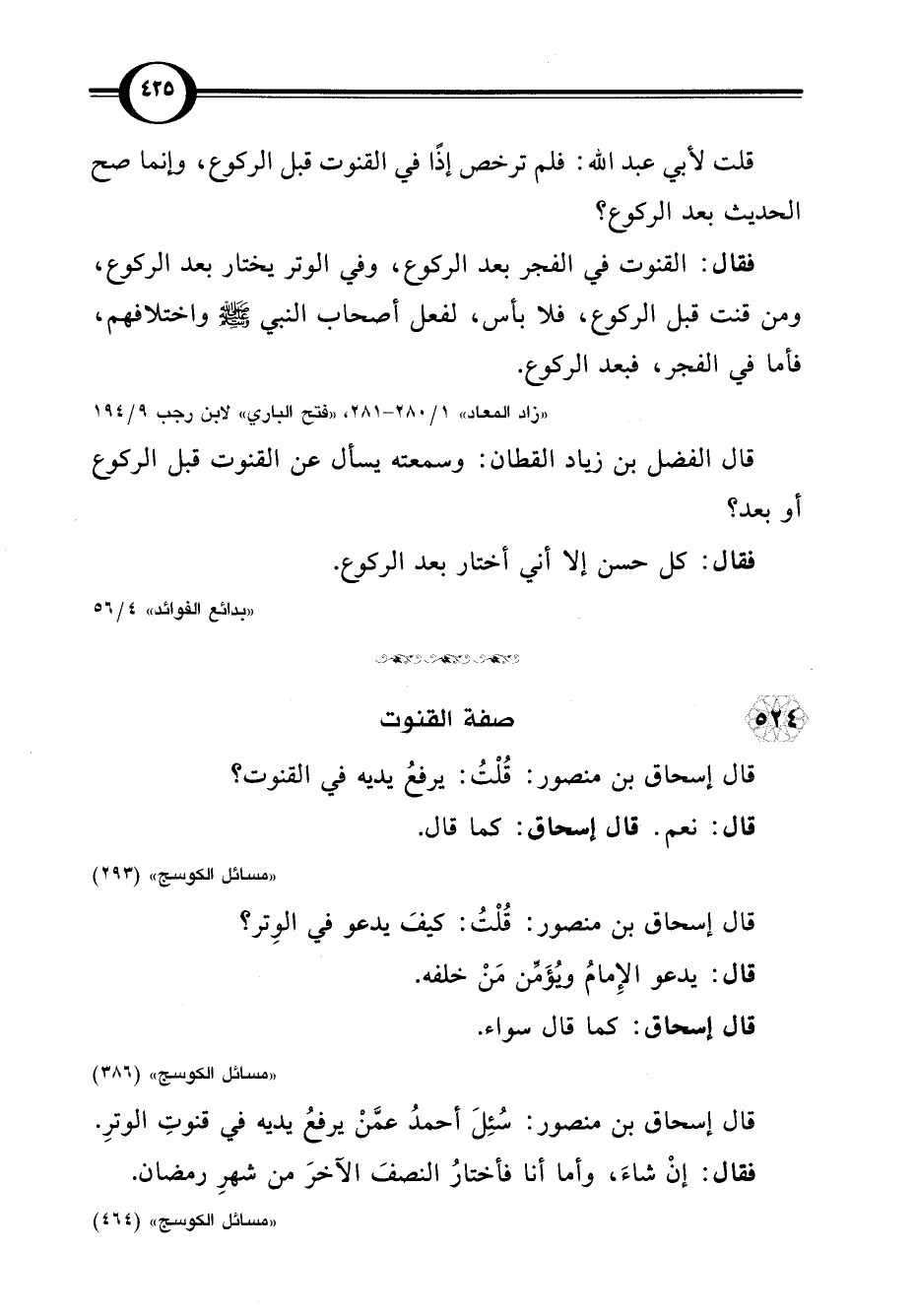 قال إسحاق بن منصور: قُلْتُ: يرفعُ يديه في القنوت؟