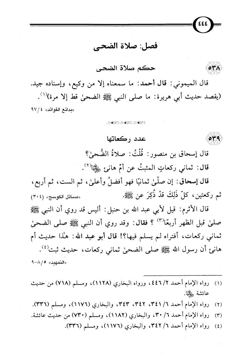 قال إسحاق بن منصور: قُلْتُ: صلاةُ الضُّحى؟