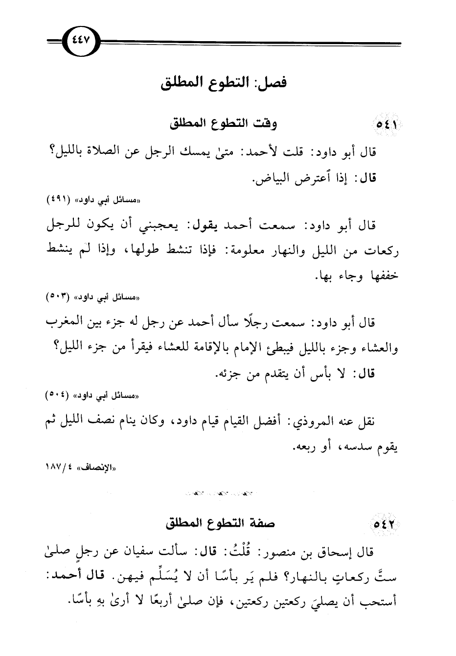 قال أبو داود: سمعت أحمد يقول: يعجبني أن يكون للرجل ركعات من الليل والنهار معلومة: فإذا تنشط طولها، وإذا لم ينشط خففها وجاء بها.