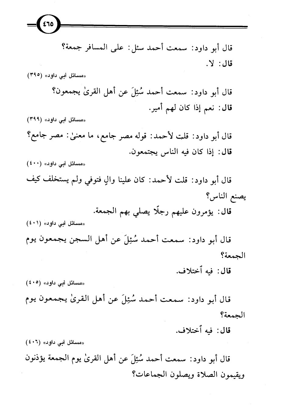 قال أبو داود: سمعت أحمد سُئِلَ عن أهل القرى يجمعون يوم الجمعة؟