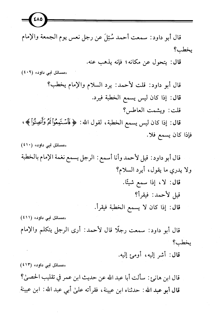 قال أبو داود: سمعت رجلًا قال لأحمد: أرى الرجل يتكلم والإمام يخطب؟